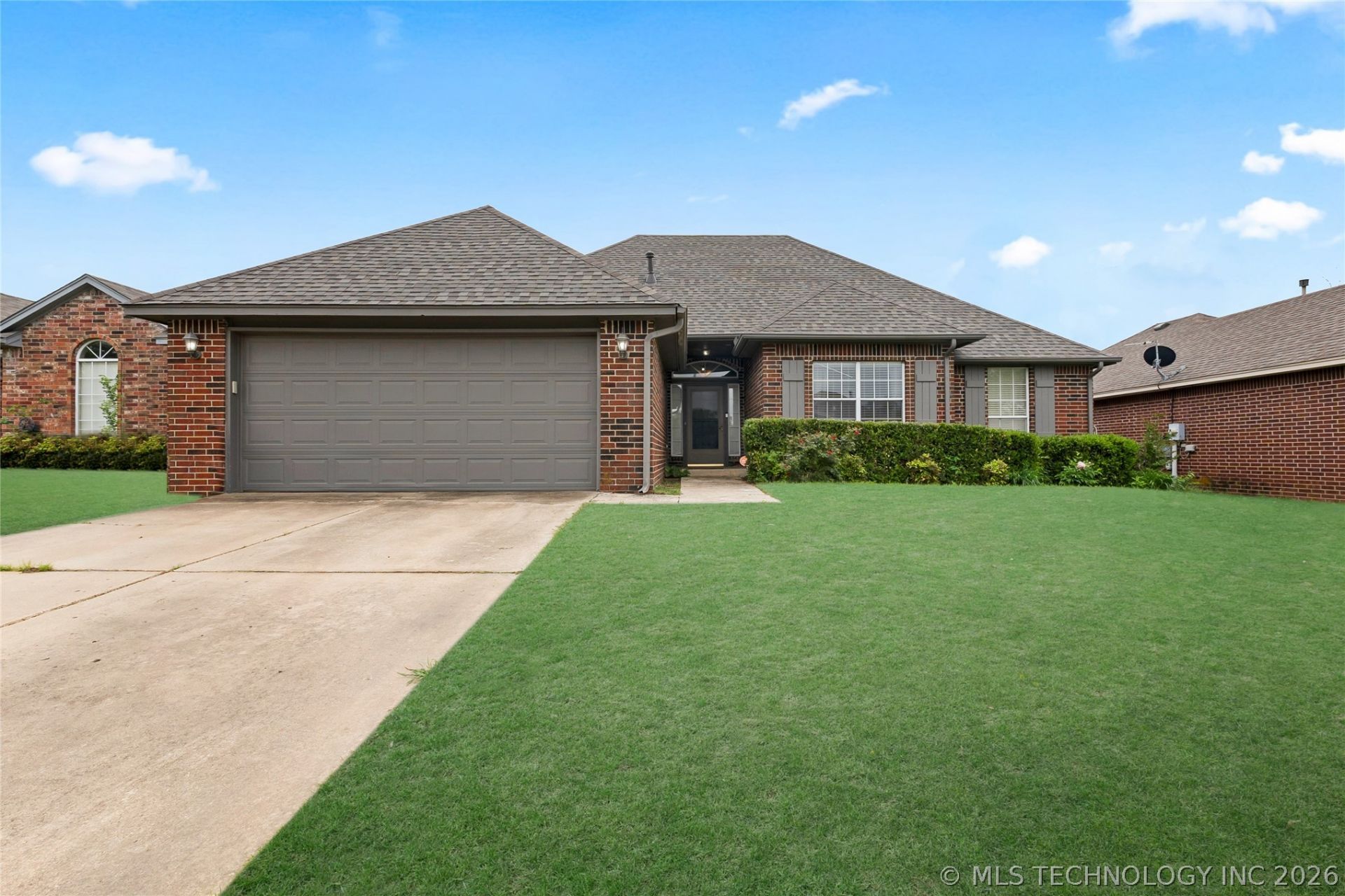 Full brick 3 Bedroom, 2 Bathroom home in Glenpool featuring a new roof, fresh paint, and new flooring in the primary bedroom. With 1,375 square feet (per CH), the single story layout feels comfortable and functional with an open kitchen to living room design that creates a welcoming central space for everyday living. The living room features vaulted ceilings and a fireplace, giving the space character while keeping the main living areas open and connected. The kitchen and dining area flow naturally with the living room, making it easy to gather with family or friends. All three bedrooms offer comfortable space, including a primary suite with its own private bathroom and new flooring. The layout provides flexibility for guests, a home office, or additional living needs. Out back, the covered patio and deck create a great place to enjoy the outdoors, whether it is morning coffee or relaxing in the evening. Located in Glenpool with convenient access to schools, shopping, and Highway 75, the home offers an easy commute into Tulsa while still enjoying a neighborhood setting.
